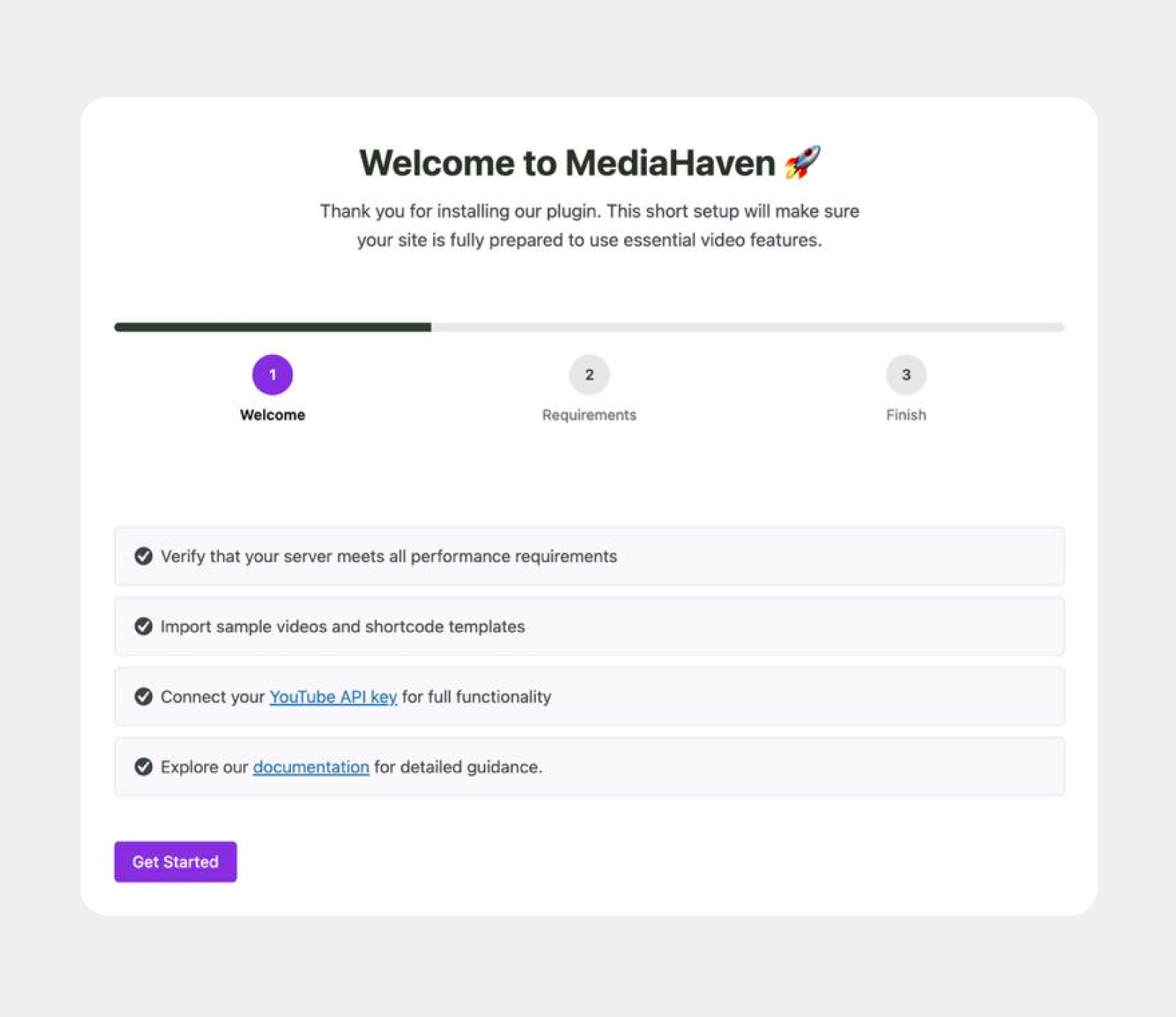 MediaHaven’s setup wizard walks you through essential configuration steps, ensuring your site is ready for video galleries, players, and monetization from day one.