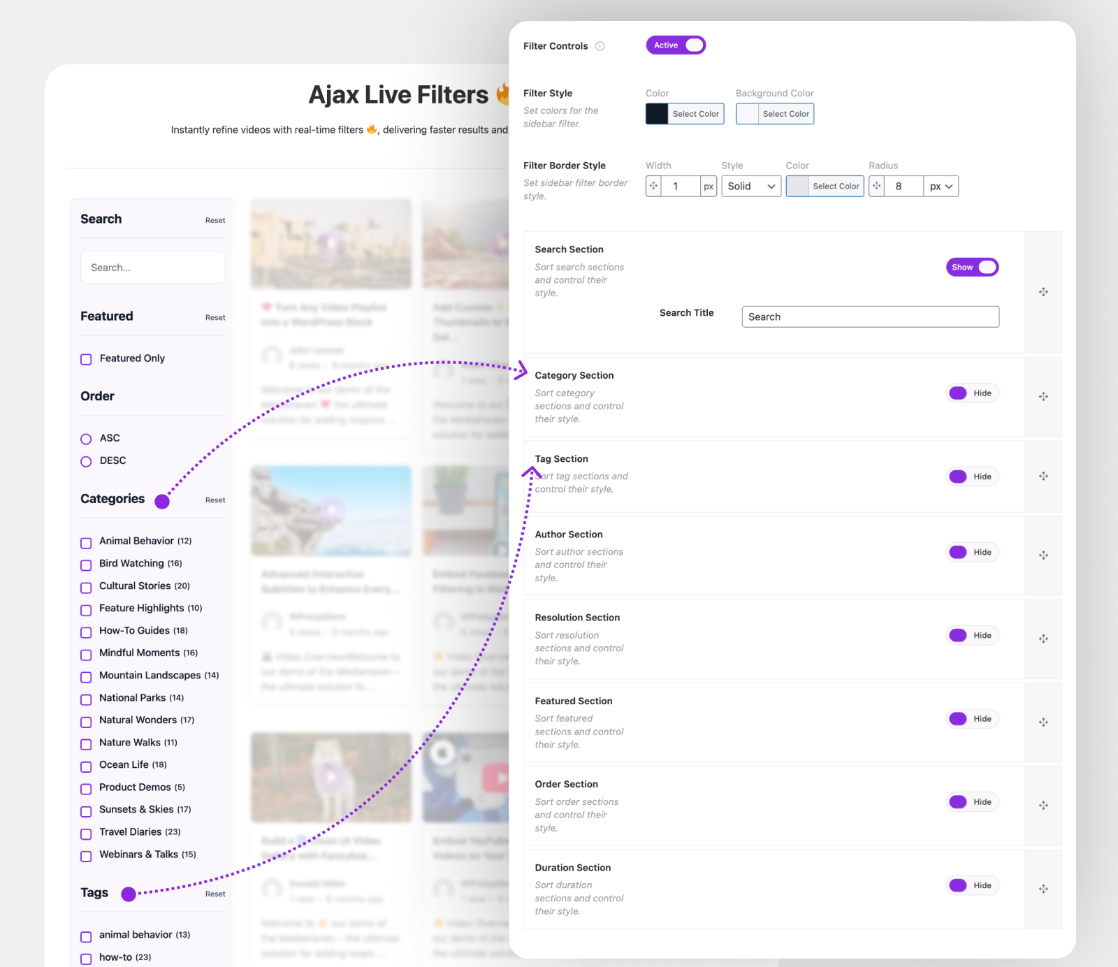 Designed for large video libraries, this makes categories and tags more discoverable, more clickable, and more engaging—especially on mobile and touch devices.