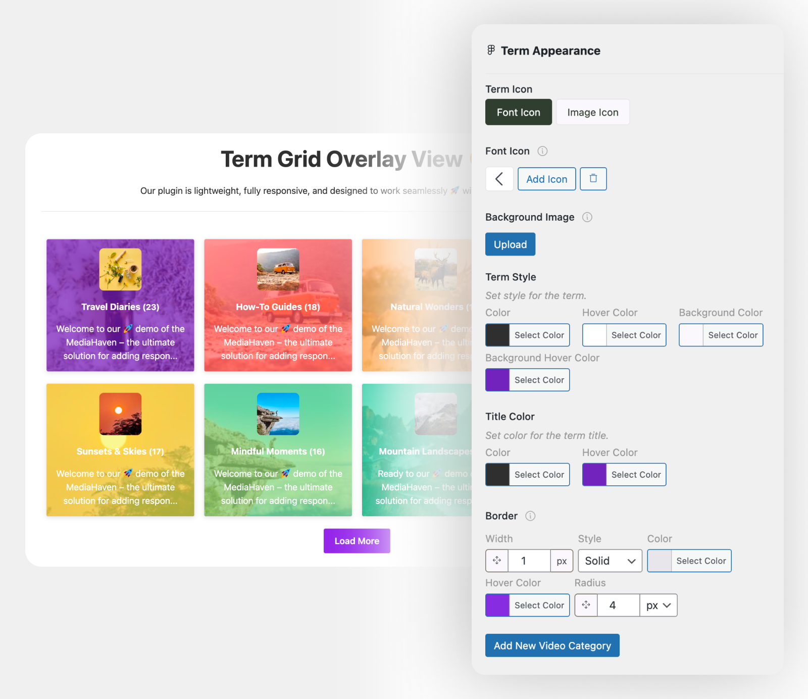 - Add icons or background images to categories and tags